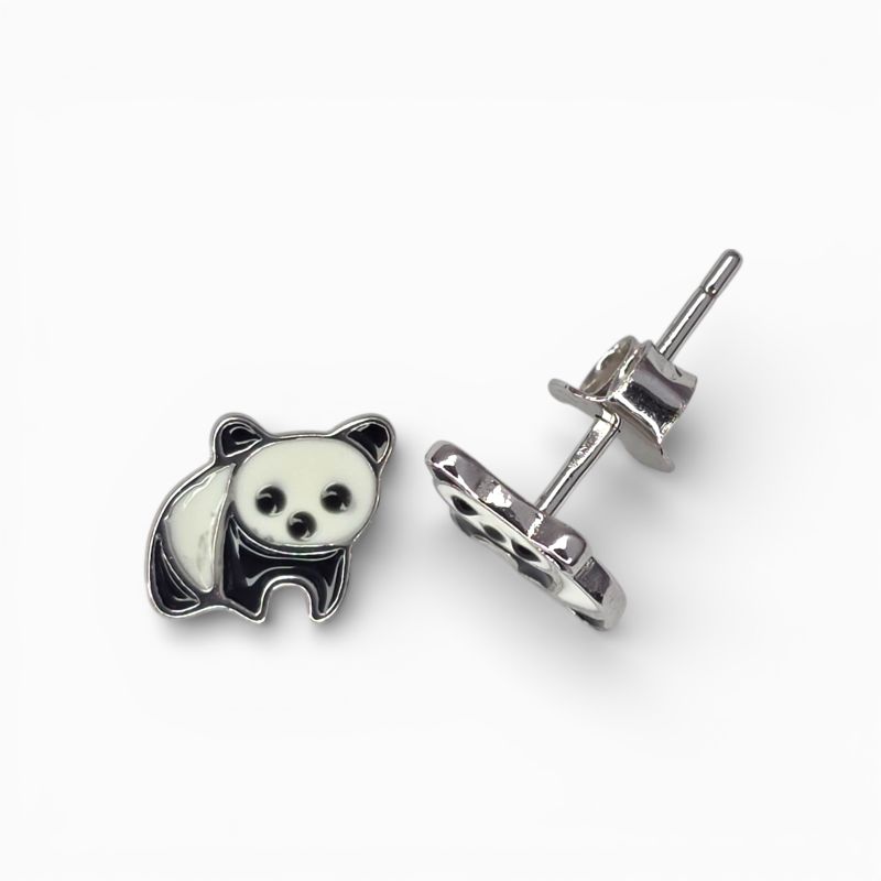 Detské strieborné náušnice Panda